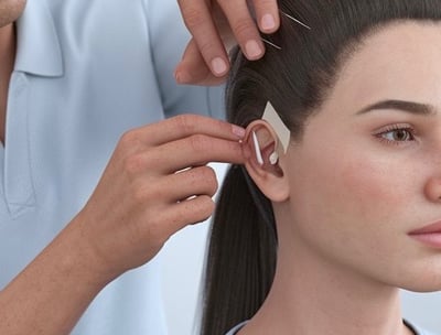Terapi akupunktur medik dengan menggunakan jarum kecil yang ditempelkan pada titik akupunktur untuk stimulasi jangka panjang.